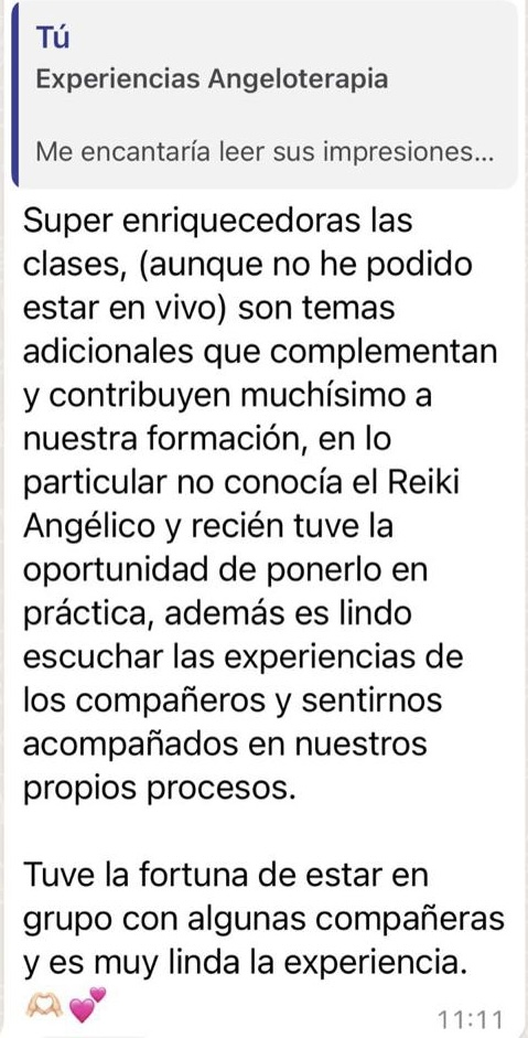 Hoy día he certificado a 111 bellas almas como sanadores intuitivos, +de 50 maestros de meditación y casi 80 angeloterapeutas (la mayoría en proceso personalizado).